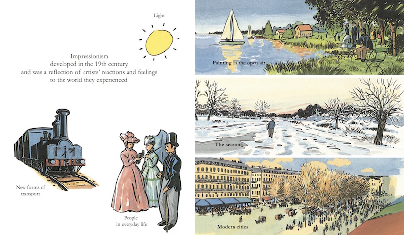 Through the works of artists like Monet, Renoir, Degas, Cézanne, Pissarro, Van Gogh and others, children will explore how these painters captured everyday moments, changing seasons, city life and countryside scenes through dabs of colour, shifting light and bold brushstrokes. From ballet dancers and bustling streets to peaceful gardens and sun-drenched landscapes, this book brings Impressionism vividly to life.