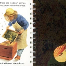 It’s very dark inside the homes of ants, bees, and termites – but with the help of your ‘magic’ flashlight made of card, you’ll see how these creepy crawlies live. Find out how ants organise their anthills, and learn which jobs the queen, worker ants, and male ants do. Discover how bees make honey in their beehives, and explore the earthy termite mounds typically found in Africa, Australia, and South America.