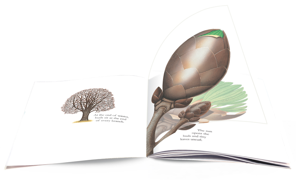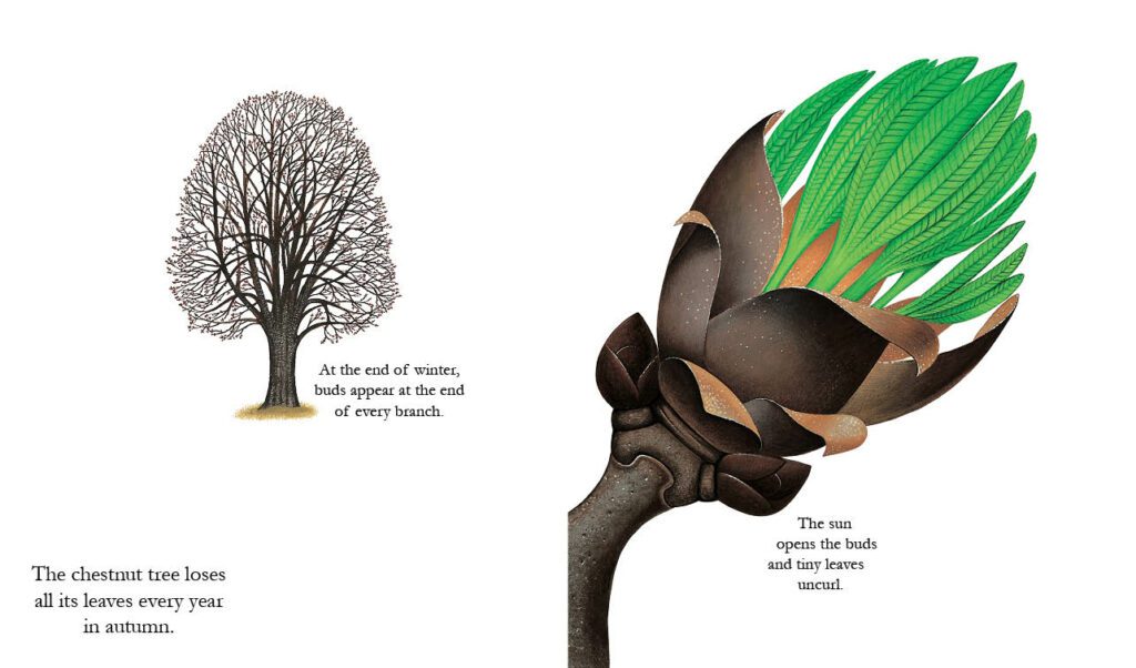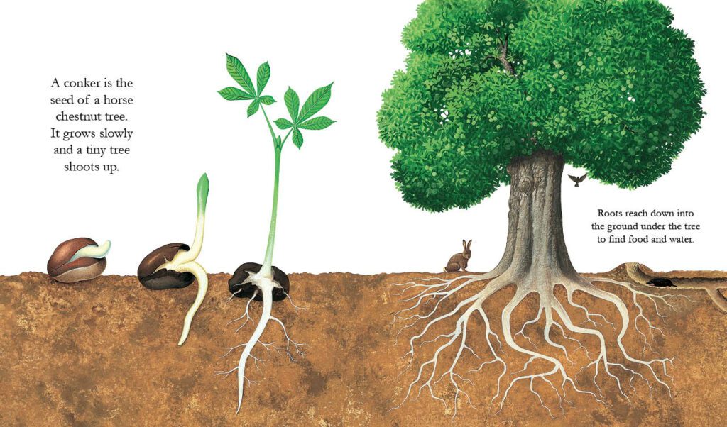 See a tiny seed grow into a mighty tree, with deep roots and branches reaching high into the sky. Stroll through the seasons and watch as the trees shed their leaves in autumn, then bud and blossom again in the spring. Learn about the different types of trees, leaves, and fruit that grow – as well as all the things we can make with the wood we get from trees, like the paper pages of this very book!