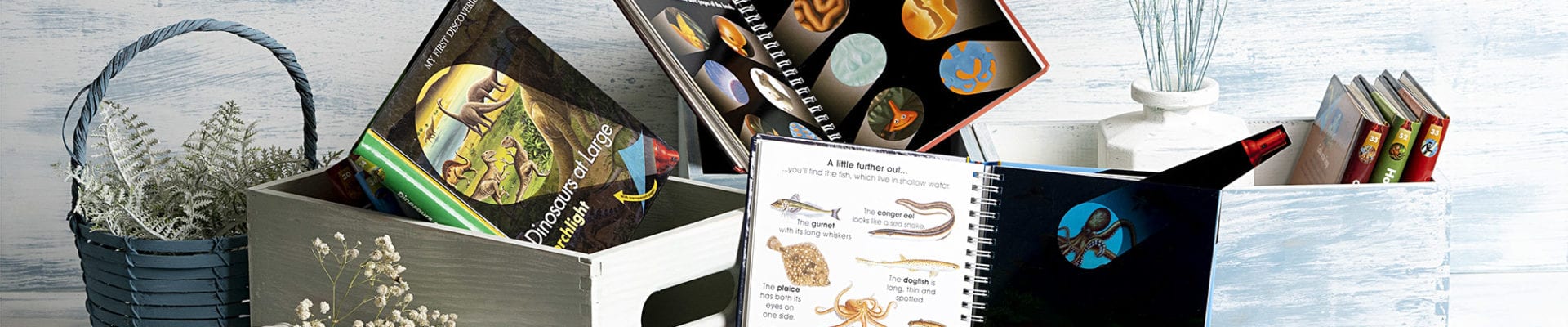 Illustrated non-fiction books for children aged 3 to 7 with a magic paper torch