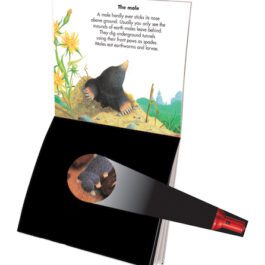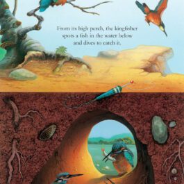 It’s so dark underground, you can’t see the animals who live down there – but with the help of your ‘magic’ torch, you’ll get to explore their hidden homes. Run with the rabbit into its burrow. Follow the mole through its tunnels. Swim with the beaver to its lodge. Swoop with the kingfisher into its riverbank nest. You’ll even discover how the extraordinary cockchafer is born and grows up entirely underground.